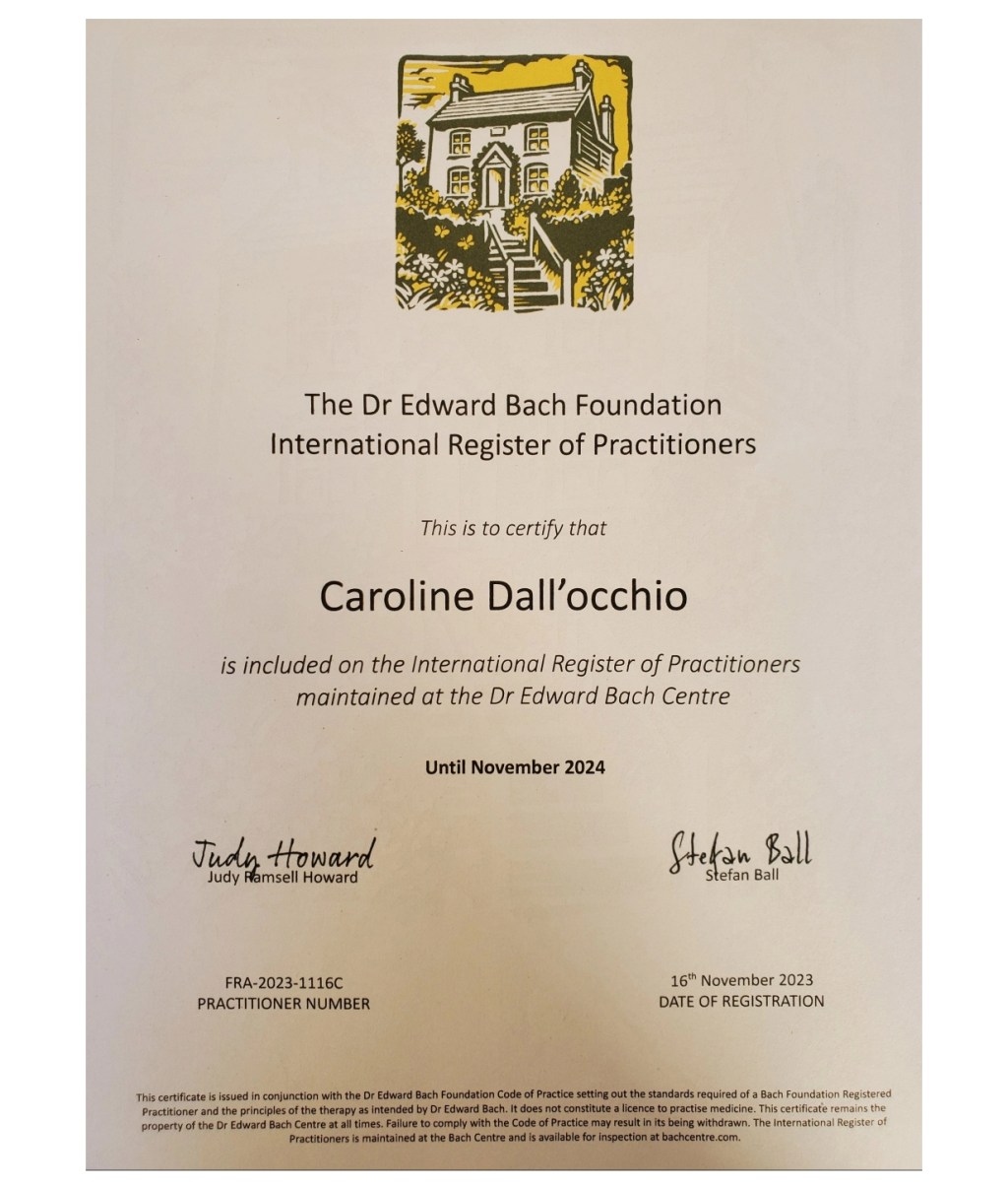 Je suis conseillère agréée en fleurs de Bach cela veut dire que j’ai suivi un programme d’enseignement avec une évaluation de mes connaissances qui garantit mes compétences pour utiliser les fleurs de Bach dans ma pratique professionnelle. Cela signifie aussi que j’exerce mon activité en accord avec le code de déontologie (code de pratique) du centre Bach, qui détermine les normes de pratiques pour tous les conseillers agréés ainsi qu’un cadre de travail sécurisant aussi bien pour les conseillers que pour leurs clients. Passionnée par la nature et le vivant, ma rencontre avec les fleurs de Bach est une évidence.